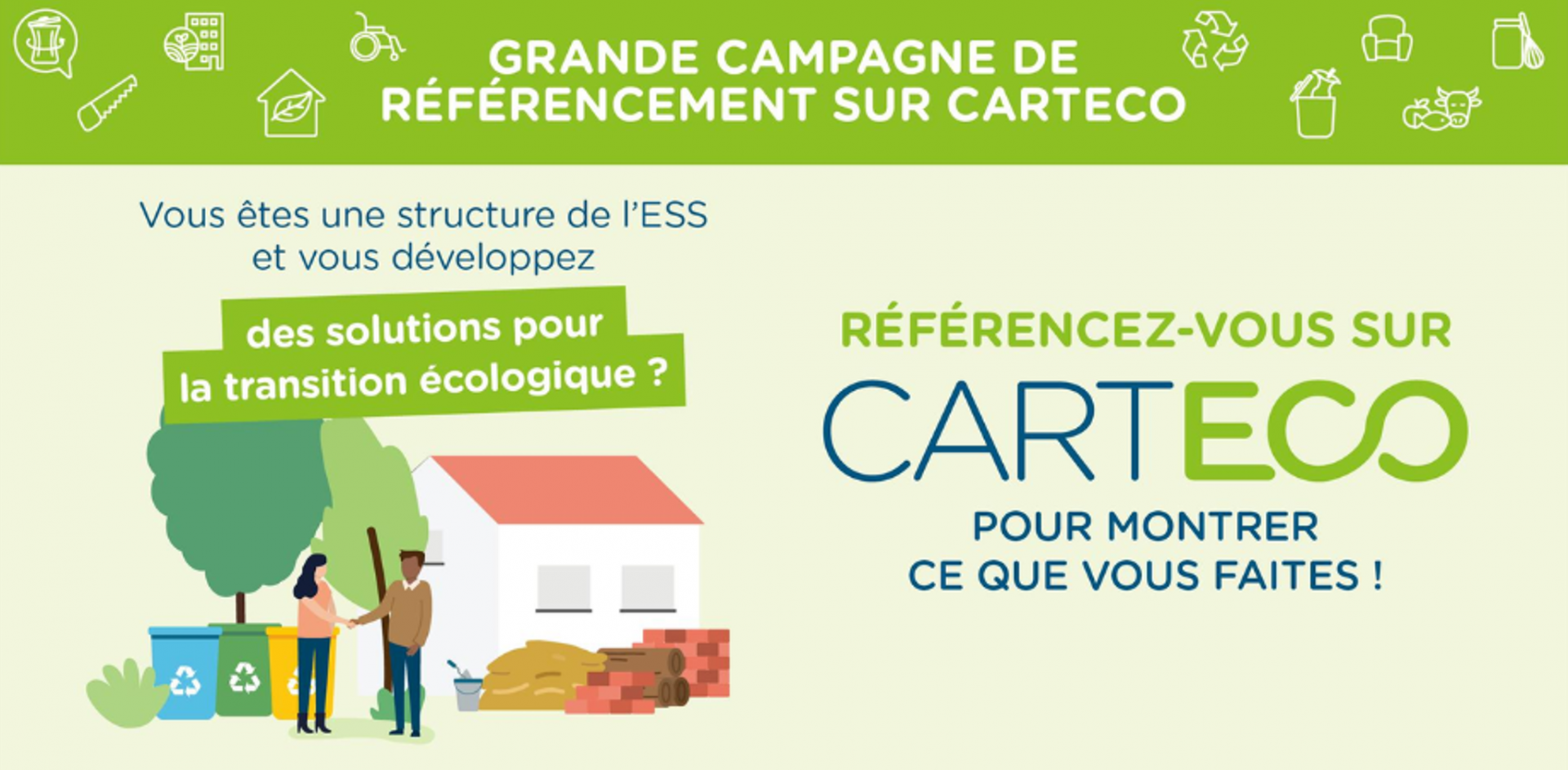 Vous êtes une structure de l'économie sociale et solidaire oeuvrant dans des secteurs variés tels que la gestion des ressources et déchets, l'agriculture et l'alimentation, le bâtiment, la mobilité, l'éducation et la protection de la nature, le numérique ou encore l'accompagnement à la transformation écologique ? Référencez-vous sur Carteco !